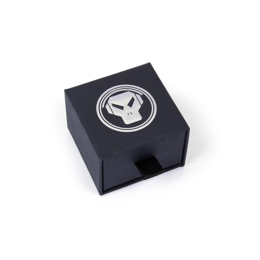 The pendant comes with a sterling silver ball chain and is packaged in a custom Metalheadz presentation box with a soft-touch pull tab.