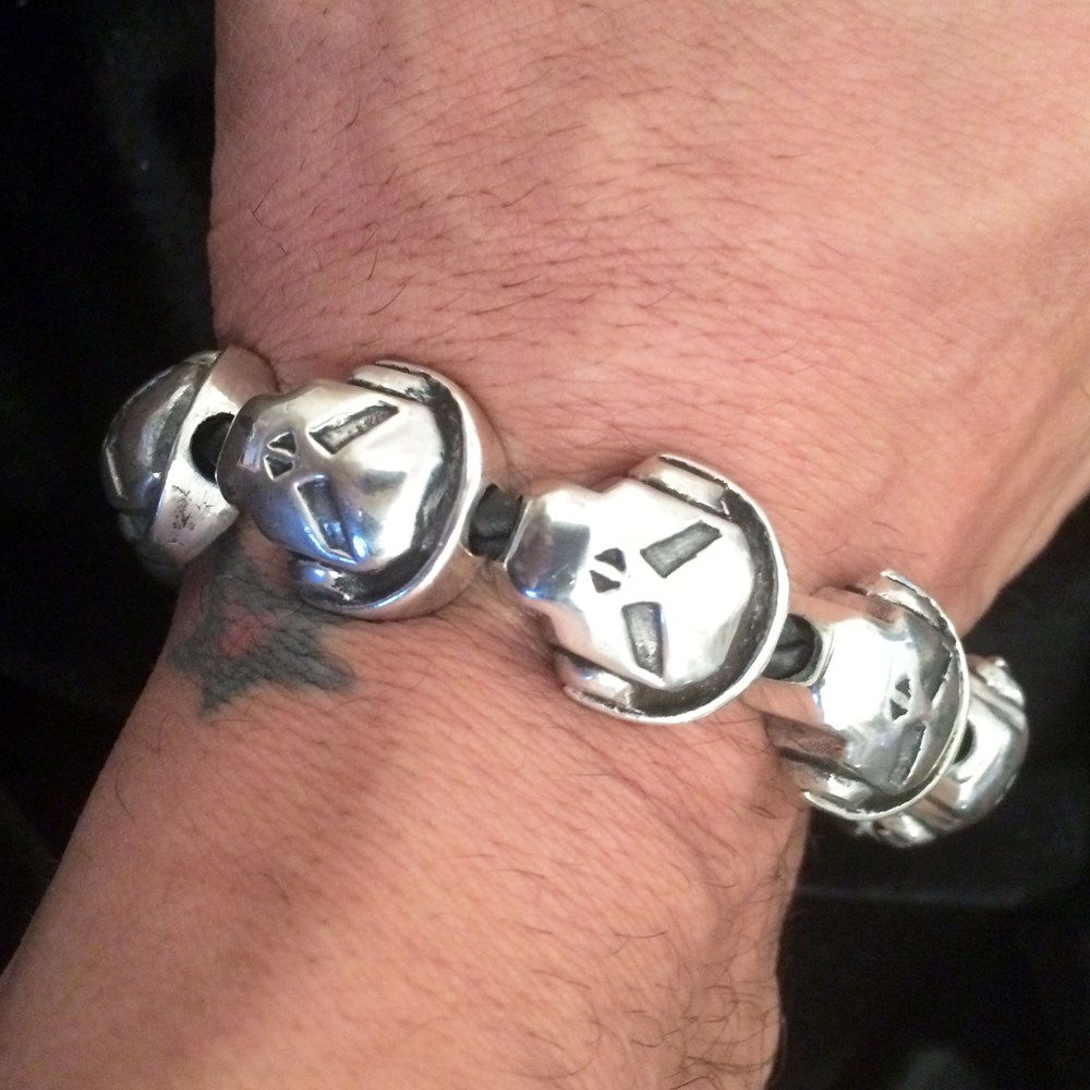 Made from 925 Sterling Silver, the bracelet is made up of a series of Metalheadz skulls complete with headphones.