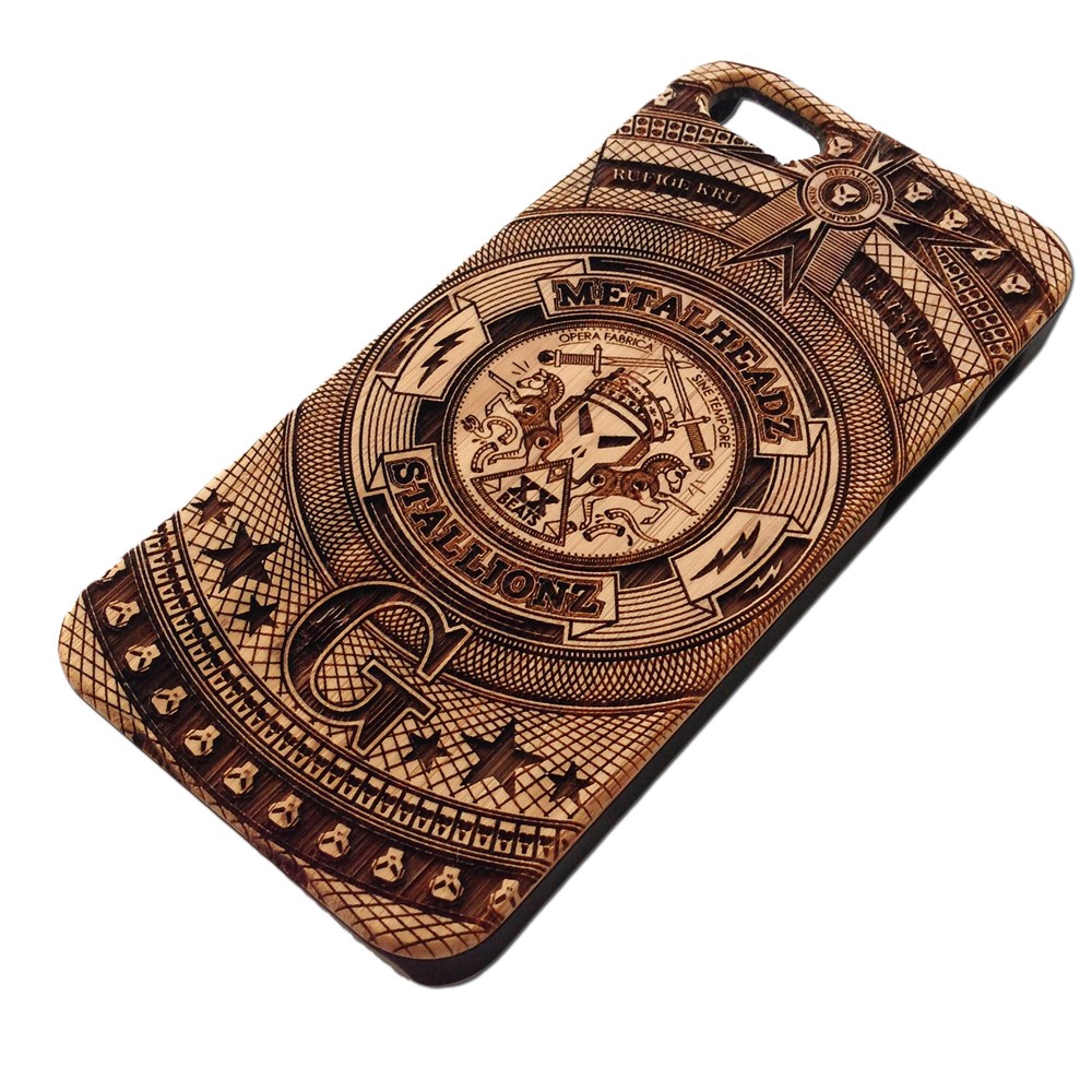 Slim, lightweight and highly durable limited edition Metalheadz 'Stallionz' iPhone 5 case in Bamboo. The cases has a matte black polycarbonate interior and surround. The back piece is solid wood, in Bamboo.